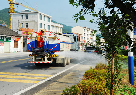 近日,县公路局组织养护职工20余人、洒水车10余辆对209国道、346国道等干线公路绿化树木进行浇水养护。今年以来,县公路局共补植草籽4.8万平方米,补植绿化树木6000余株,确保了道路绿化树木整洁美观,为“畅安舒美”公路加油助力。 (王东 摄)