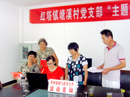 5日,红塔镇财政所政务公开人员来到塘溪村,开展政务公开流动查询活动,向群众做好农业“三项补贴”改革的宣传解释工作,对惠农补贴进行上网查询核对。当村民看到自己享受的惠农补贴均能与网上公开的信息一一对应,纷纷表示政务公开政策让村民得到实惠的同时也让权力变得公开透明。