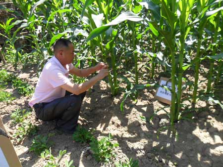 连日来,门古寺镇农技人员深入田间地头,展开农作物新品种、新技术田间应用展示情况调查,并切合实际,指导农户做好当前农作物田间管理,促进农业生产安全,确保农业增产增收。 (王玉兵 摄)