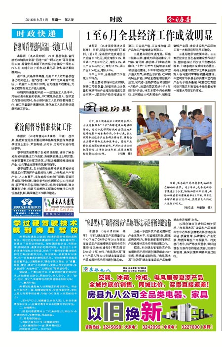 二是重点项目快速推进。环城一级路三期、唐城大桥启动建设,十竹路、青万路、榔沙路、门中路进展顺利;“十竹”天然气长输管道工程项目启动建设,今年年底城区有望开通天然气;神武山珍扩能、仁和钢构转址扩能、庐陵王酒庄项目投产运营,稻花香·玉辂醉酒业项目预计9月投产,岩屋沟景区预计9月1日前对外开放,神农本草中药免煎颗粒、忠和酒业10吨料酒生产、德蜂堂蜜蜂产业园、神农绿谷农产品深加工等一大批项目即将开工建设。