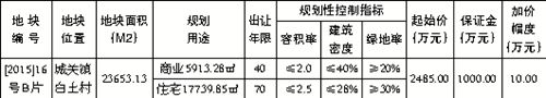 挂牌报价期限从2016年9月5日至2016年9月14日(星期三)16:00时止。挂牌期限截止时仍有竞买人要求报价时,出让人将对挂牌宗地进行现场竞价,出价高者竞得。