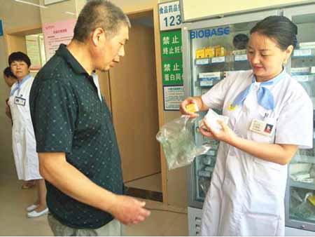 “真是太谢谢你们了,你们送的这个水袋非常实用,上次领的胰岛素从城里拿回家一点没坏。” 家住窑淮的王爹爹激动的说。近日气温居高不下,各种药品的保存也面临着重大考验,其中怕冷又怕热的胰岛素保存和领取成了新的难题。为解决这一问题,县保健院慢性病门诊人员开动脑筋,用冰箱和封口机“自制”2-8℃的小水袋,免费发放给每一位领取胰岛素的患者,实现了胰岛素在适宜温度下储存和运输,为患者提供了便利,保证了药物质量,获得了广大慢性病患者的一致好评。近年来,该院积极践行“视病人为亲人”办院理念,为患者提供了高效、快捷、优质的医疗服务。 (王春香 何曼 摄)