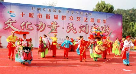 本报讯 (通讯员张楚林) 19日,2016年十堰市首届群众文艺展演季表演类节目(音乐、舞蹈、戏曲、曲艺、民俗)在市博物馆广场落下帷幕。具有浓郁地方特色的房县民俗类节目《房陵风》、原生态民歌《诗经民歌联唱》、诗经广场舞《关雎》等节目为车城人民送上一场文化盛宴。这也是我县首次组织大规模表演类节目在市演出。