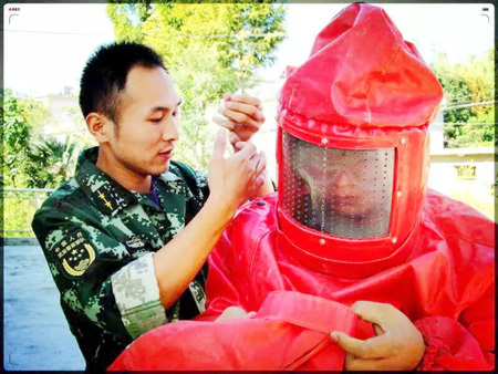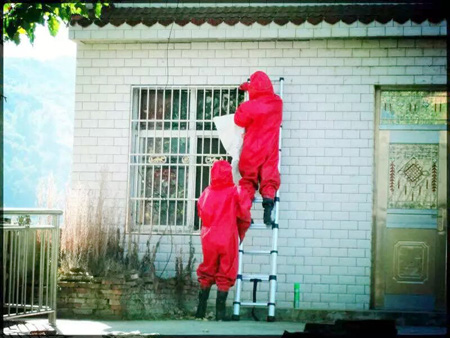 前不久,家住白鹤镇赤岩村3组胡某发现家里屋檐下的一个马蜂窝越变越大,自己不敢摘除,只好向民警求助。接警后,消防官兵立即赶往现场,经侦察发现,马蜂的“巢穴”筑在一楼窗户下方,蜂窝周围不时有马蜂在盘旋。随后,两名消防员身着防蜂服对蜂窝进行清理,用袋子快速的将蜂窝套住,再用刀将马蜂窝割进袋子里。