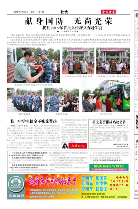 本报讯 (通讯员高英) 6日傍晚,一位年轻的女士带着一张彤红的感谢信匆匆来到县一中政教处,一进门就激动地说:“真是太感谢你们了!你们教育的学生太好了!我一定要见见他们,当面向他们表示感谢。”