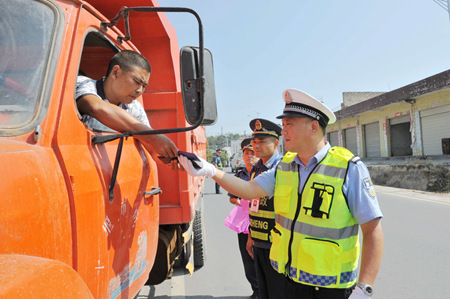 在联合执法现场,交警部门负责指挥引导车辆接受检验,公路管理机构负责实施称重,对经检测确认违法超限超载的车辆,由公路管理机构监督消除违法行为;同时依据管理机构开具的称重和卸载单,及时进行罚款、计分。