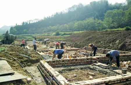 为确保异地扶贫搬迁工作如期完成,让贫困户在年底前顺利入住新家,“十一”期间,化龙堰镇渭沟村集中安置小区的建设现场,工人们正抢时间,赶进度,在工地上忙碌不停,在烈日下挥洒汗水。他们的辛勤劳碌,在该小区建成后,可使渭沟村共24户74人入住新家。(任爱琼 摄)