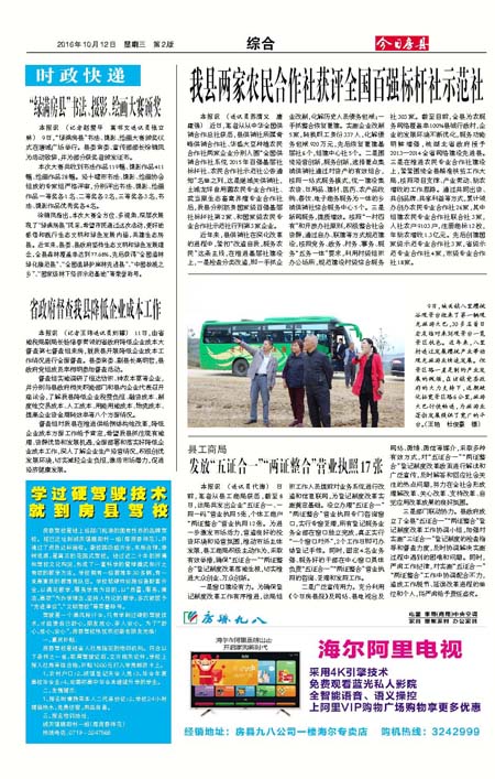 本报讯 (通讯员苏清义 唐建强) 近日,笔者从从中华全国供销合作总社获悉,县供销社所属青峰供销合作社、华盛大豆种植农民合作社两家企业分别入围“全国供销合作社系统 2015年百强基层社标杆社、农民合作社示范社公告通知”名单之列,这是继城关供销社,土城龙坪食用菌农民专业合作社、武当原生态畜禽养殖专业合作社后,我县分别跻身国家级百强基层社标杆社第2家、和国家级农民专业合作社示范社行列第3家企业。