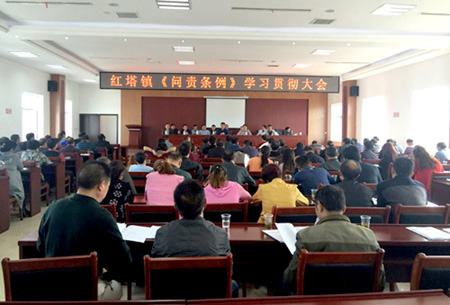 近日,红塔镇利用召开换届选举培训会议的机会,组织镇政府全体机关干部、村书记、主任、文书和镇直部门负责人集体学习了《中国共产党问责条例》。