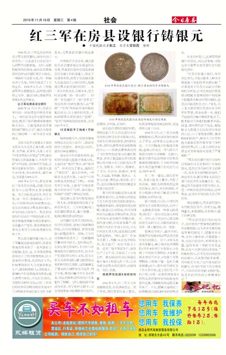 1931年,红三军在房县西街设立鄂北农民银行,并发行自己的货币,广泛流通于以房县为中心的鄂西北根据地。其中,在根据地使用的银元,由房县苏维埃政府组织12位银匠用手工铸造,一种铸有马克思头像,另一种铸有列宁头像,当时共铸造了1万枚左右。1932年3月,红三军撤离鄂西北根据地后,这种银元即停止发行。截至目前,收藏界仅发现8枚这种银元。