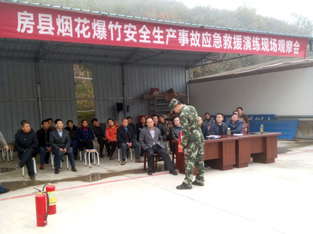 近日,县安监局在陵阳烟花爆竹公司开展烟花爆竹行业安全生产事故应急救援演练活动,40余家烟花爆竹零售经营户观摩演练。