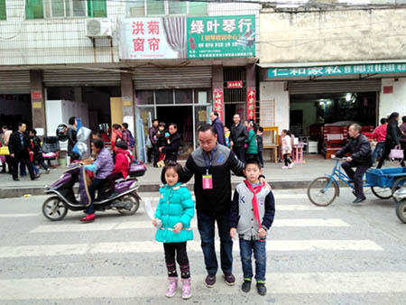 该校位于县城老城区繁华地段,街道本来较窄加上人口密集,每到早晚上学放学高峰时段,来回穿梭的行人、车辆让校门一条街车满为患,甚至“寸步难行”,存在诸多交通安全隐患。为了解决上学、放学时段校门口秩序差和交通堵塞等现象,该校经过细致分析、充分调研,成立了一支由教师组成“爱心护学岗”,专门负责学生上、放学时段的路队安全巡逻,为孩子们筑起一道护学的安全屏障。