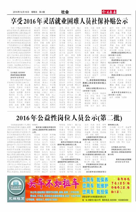 为加强就业援助工作,特别是帮扶就业困难人员就业,根据《省人社厅省财政厅关于进一步规范公益性岗位开发管理工作有关问题的通知》(鄂人社发[2012]47号)、《省财政厅省人社厅关于印发<湖北省就业专项资金管理办法>的通知》(鄂财社规[2011]19号)、《县人社局县财政局关于进一步加强和规范公益性岗位开发管理工作的通知》(房人社发[2015]99号)等文件的规定,经用人单位申报,县人社局、就业局按程序进行了初步核实,拟给予公益性岗位补贴,现将初步核实情况予以公示。公示期7天,公示时间为2016年12月14日至2016年12月20日。在此期间,如有对公示对象存在异议,欢迎来电、来信或来访反映情况。
