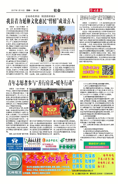 精准扶贫,文化先行。近年来,县委、县政府十分重视文化惠民工作,把发展“民间文艺院团”、“文体大家乐中心户”作为延伸文化惠民“臂膀”的一项重要举措,目前,遍布城乡的“民间文艺院团”已达280余家、“文体大家乐中心户”20多户。县文体局通过对各文艺团队、中心户扶持音响、乐器等文艺设备,并进村入户开展文艺辅导,指导他们开展文艺活动,以此弥补基层文化活动的不足。特别是在居住相对集中的组、院选择有文艺专长的人才,确定其为“文体大家乐中心户”,带动周边群众开展文体活动的作法已成为全省文化品牌。目前,这些民间文艺团队、文化中心户常年活跃在我县城乡、社区、院落,对丰富群众文化生活,营造和谐社会,促进我县公共文化服务体系建设发挥着重要作用。