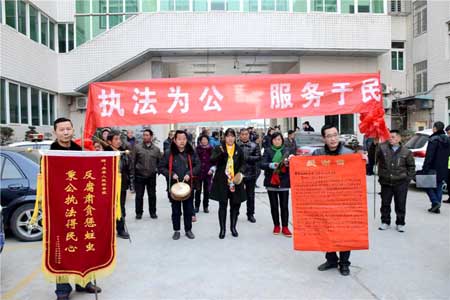23日,窑淮镇观音堂村党群代表敲锣打鼓,将写有“反腐肃贪惩蛀虫,秉公执法得民心”的锦旗和一封感谢信送到县人民检察院,感激该院积极作为,秉公执法。