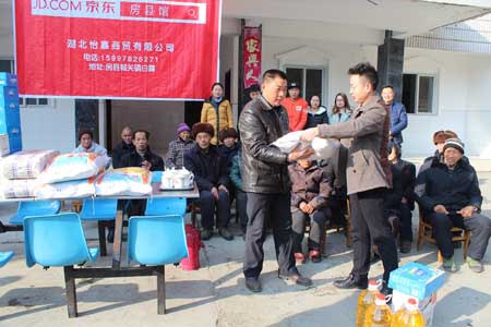 23日,返乡创业爱心企业家——湖北怡嘉商贸有限公司负责人曾清兵带领企业员工,到野人谷镇福利院看望慰问在院的孤寡老人,为他们送去了大米、油、牛奶等生活慰问品及春节的祝福,让他们深切感受到社会的关爱和温暖。(王玮 刘伟 摄)