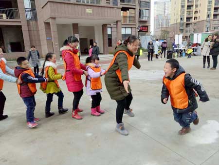日前,县鸿泰物业和安利公司驻房工作室携手举办的迎新春亲子运动会吸引了不少孩子和家长积极参与。原汁原味的跳绳、丢沙包、滚铁圈、老鹰捉小鸡等亲子活动,让家长们一下子回到了儿时,让孩子们体验了一把爸爸妈妈的童年“玩法”。 (况建斌 龚玉琴 摄)