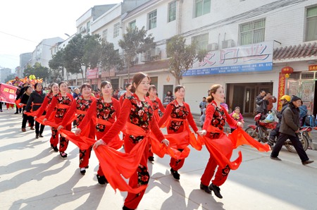 9日,大木厂镇举办“贺新春,闹元宵”文艺汇演活动。当地6支文艺代表队走上街头进行文艺巡游,热情洋溢的扭秧歌、喜闻乐见的广场舞、鼓舞人心的腰鼓队、传统民俗的舞龙灯等,节目精彩纷呈,群众反响热烈。随后,在镇中心文化广场,20余个围绕精准扶贫和十字主流价值观精心编排的节目轮番上演,为广大群众脱贫致富奔小康加油鼓劲。(任薇 樊瑞林 杜园园 摄)