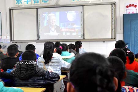 14日,县实验小学组织学生观看“2016年度感动中国人物颁奖典礼”视频,希望学生们汲取榜样力量,反思日常行为,践行社主义核心价值观,传播社会正能量。
