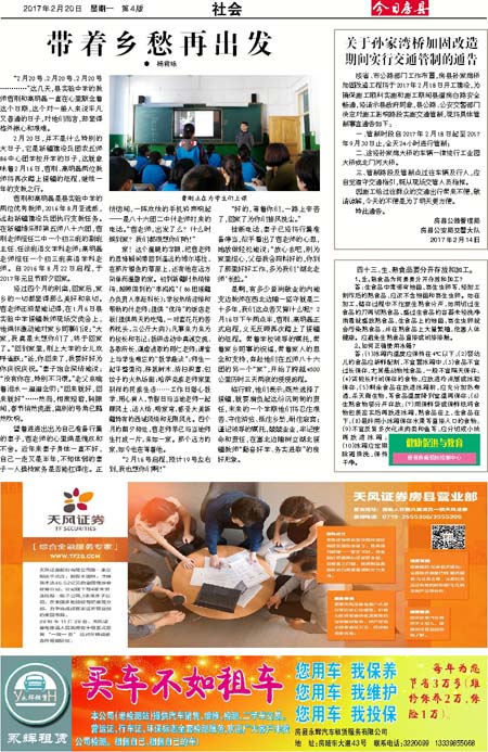 经过四个月的别离,回家后,家乡的一切都显得那么美好和亲切。曹老师还清楚地记得,在1月6日县实验中学援疆教师现场交流会上,他满怀激动地对家乡同事们说:“大家,我真是太想你们了,终于回家了。”回到家里,刚上大学的女儿欢呼雀跃:“爸,你回来了,我要好好为你庆祝庆祝。”妻子饱含深情地说:“没有你在,特别不习惯。”老父亲噙着泪水一遍遍念叨:“回来就好,回来就好”……然而,相聚短暂,转眼间,春节悄然流逝,离别的号角已黯然吹响。