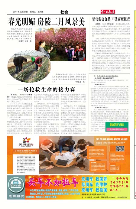 2月10日上午,突发脑溢血且病情危急的谭天成被120救护车从距县城180公里的九道乡关坪村接送到房县人民医院。途中,为了赢得抢救时间,医生、交警、车辆、行人一路让出生命通道,在房县上演了一场生命接力赛。