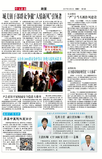 会议提出,今年,县国税局将紧紧围绕税收现代化“六大体系”建设目标任务,贯穿“夯实基础、全面提升”主线,紧盯 税收收入中心,强化行业税收管理,持续优化纳税服务,凝聚队伍整体活力,突出 “抓住八项重点,力促八个提升”,即抓税源监控,促收入提质;抓改革创新,促 征管提效;抓基层基础,促干部职能;抓便民办税,促服务提档;抓信息管税,促 管理提升;抓多方协税,促治税提劲;抓党建引领,促精神提振;抓督查督办,促 落实提速,努力推动房县国税工作再上新台阶。
