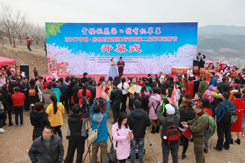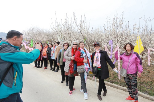 阳春三月,八里村樱桃基地樱花烂漫。上午九时许,19辆满载十堰、襄阳、宜城、南阳、西安等地近千名游客的旅游大巴来到城关镇八里村樱桃园,热情好客的房县人民早已敲着锣鼓,舞着龙船,跳着欢快的舞蹈迎接,城关镇各个社区文艺团的开幕式表演为远道而来的客人奉上了一道精彩的文艺大餐。随后游客们陆续入园赏花,不少摄影爱好者纷纷拿出设备,留下精彩瞬间。