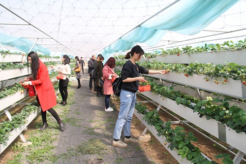下午2时许,虽然天空飘着小雨,但丝毫未影响到游客们摘草莓的热情,停车场早已停满了大大小小的车辆。游客们走进园内一边不断弯腰寻找理想的果子,一边和同去的亲友说笑。不少人带着小朋友,手把手教他们采摘,和孩子共同体验田间地头的乐趣。军店镇禾益天下农业观光园的草莓不仅个大、颗粒爆满,而且香甜。游客们纷纷为高质量的有机草莓点赞,离开时还不忘买几筐带给亲朋好友。