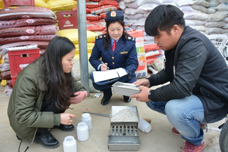 21日,县工商局与黄冈检测中心专业技术人员开展农资市场化肥专项抽检。抽检过程中,执法人员严格按照商品质量抽检的有关程序,做好相关记录,认真检查农资经营户的营业执照和进货台帐记录、进货凭证等相关手续,提醒农资经营户不要购销假冒伪劣农资。此次行动共出动执法人员18人次,检查农资经营户15户,抽查8个品种的化肥。(杨误稀 摄)