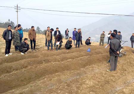 29日,沙河乡组织各村烟农在五塘村召开整地施肥起垄抗旱移栽技术现场会,烟站技术人员对烟叶春季种植的技术和农具的使用方法做了详细的讲解,烟农就相关操步骤进行了认真的观摩和实际操作。(桂培培 马正文 摄)