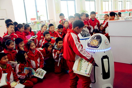 “对于孩子们而言,‘小胖’就是他们探究人工智能领域的一个起点。我们之所以让‘小胖’走进学校、走进阅览室、走近孩子们,就是想通过这样的方式,启迪孩子们的认知,激发他们的创造力,让更多的孩子向往人工智能、机器人领域并主动靠近它。后期,我们还将打算建立创客机器人教室,装备人工智能机器人,开展人工智能校本课程……”该校校长卢清泉如是说。