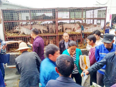 19日下午,县财政局驻大木厂镇扶贫工作队引进房县富源生态养殖专业合作社在桥梁村发放猪仔122头,惠及61户贫困户,去年已享受政府扶持2000元“四子”资金的贫困户免费领取猪崽,按市场价回收生猪时扣除猪崽本钱; 去年未享受“四子”资金扶持的贫困户,免费领取猪崽,猪崽钱由镇政府直接和合作社结算,年底生猪可以按市场价回收,也可以自行处理。(张德福 彭兴 摄)