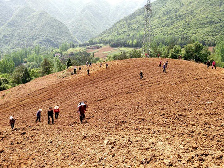 4月27日,尹吉甫镇艾蒿基地一片繁忙景象。今年来,该镇以精准扶贫产业发展为主线,积极扶持七星沟村、玉堤村、沈家湾村、榔口村4个村艾蒿产业种植大户,以合作社模式建艾蒿产业基地4处面积达1000亩。(刘中华 摄)