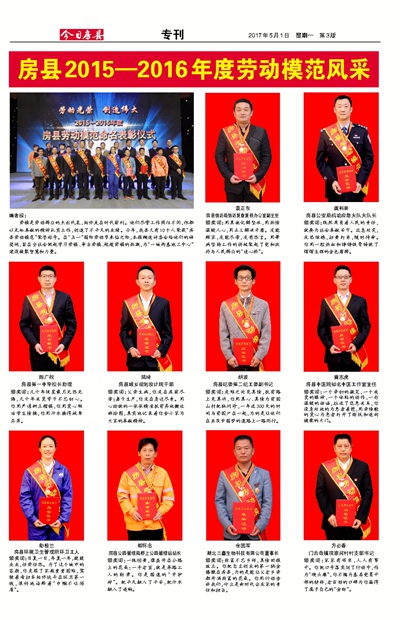 劳模是劳动群众的杰出代表,始终走在时代前列。他们尽管工作岗位不同,但都以无私奉献的精神扎实工作,创造了不平凡的业绩。今年,我县又有10个人荣获“房县劳动模范”荣誉称号。在“五一”国际劳动节来临之际,本报撷选评委会给他们的颁奖词,旨在全社会掀起学习劳模、争当劳模、赶超劳模的热潮,为“一城两基地三中心”建设凝聚智慧和力量。