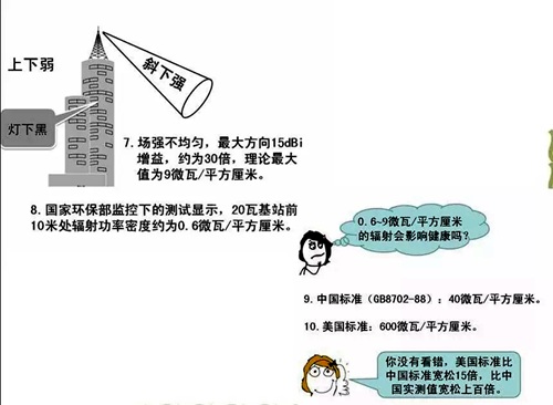 首先解答一下,基站有辐射吗?答案是,有!必须有。但这种辐射属于电磁辐射。但它给人体带来的影响与危害其实并不像人们想象中那么可怕。让数据来说话,如图所示: