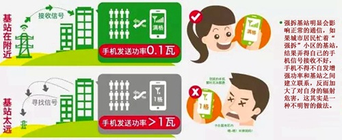 错!有许多人认为手机信号差点儿没有关系,只要不在自家附近建设基站就不会受到辐射。但事实上真的如此吗?手机在远离基站的情况下通话,其信号强度显示只有“一格”时,发射功率在1W以上,处于最强状态;反之,当显示“满格”的时候,手机发射功率将小于0.1W。