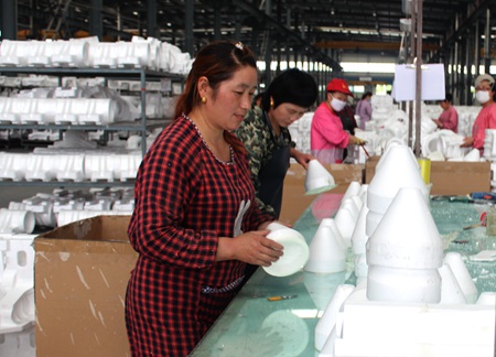 18日,记者在星源工贸车间看到,工人们正在制作汽车铸造配件所需的白模(如图)。截至目前,该厂已具备年生产30000辆份汽车悬架平衡系统总成的生产能力。(王玮 龚娟 摄)
