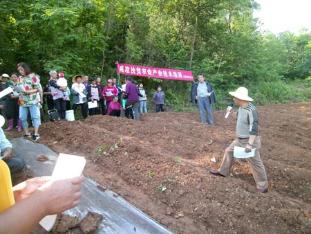 今年,双溪村为增强精准扶贫贫困户造血功能,引导农民发展订单线椒基地500亩。当前,正值线椒苗大田移栽的黄金时节,为全力提升精准扶贫户能力素质,县农广校和红塔镇农业技术服务中心联合在红塔镇双溪村二组举办精准扶贫产业技术培训现场会,县蔬菜技术专家深入田间地头现场讲解起垄、覆膜、移栽、施肥、田间管理、病虫害综合防治等技术要领。 (刘林 摄)