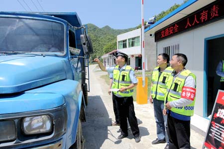 本报讯 (记者赵爱平通讯员吴勇星) 26日,记者在土城镇玉皇观水库危险路段看到,由土城镇交管办、综治办、派出所、公安交警等部门组成的联合执法队伍正在对过往车辆进行执法检查(如图)。这是土城镇全力做好交通安全工作的一个缩影。