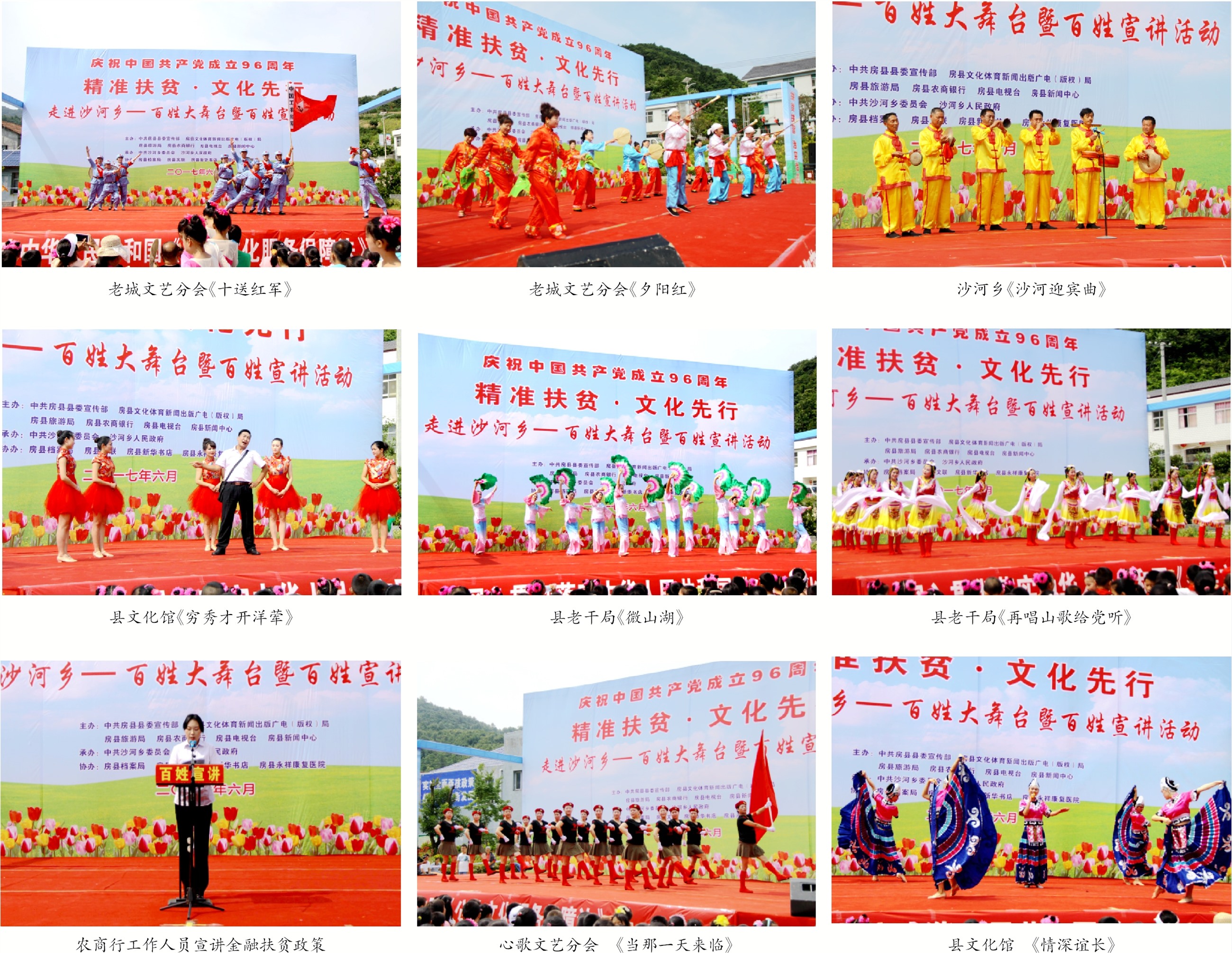 26日,以“精准扶贫 文化先行”为主题的百姓大舞台暨百姓宣讲活动走进沙河乡,来自各单位、文艺协会、社区的文艺代表队表演了舞蹈、民歌、情景剧表演等节目,为广大群众献上了一场视听盛宴,为打赢脱贫攻坚战鼓舞士气、凝心聚力。