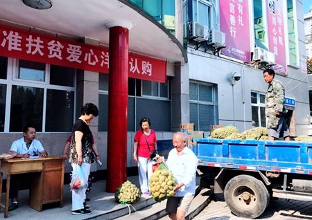28日,县人民医院扶贫驻村工作队在门诊广场设立销售点,为野人谷镇马里村贫困户马富贤销售高山土豆。短短两个多小时,3000多斤77袋土豆以每袋32元的价格被医院职工认购。据悉,马里村还有近2万斤的高山土豆在两个月后上市,爱心认购活动还将在县人民医院全体职工中延续。(裴中东 屈振坤 摄)