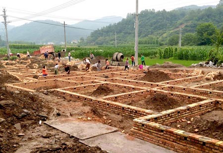 连日来,笔者在门古寺镇马家河村看到,工人在该村肖家庄、榔玉沟搬迁小区抢抓工期紧张施工。今年来,马家河村两委和县人社局驻村工作队把易地搬迁工作摆在突出位置,把贫困户建房作为改善民生的重要举措。6月初该村两个集中安置小区全面开工,力争赶在年底以前确保贫困户搬迁入住。 (贾海燕 摄)