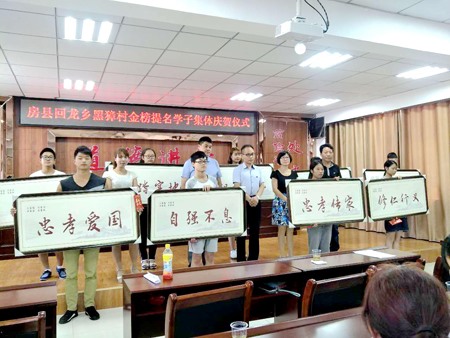 本报讯 (特约记者赵礼江) 20日,来自回龙乡的9名学子及亲朋好友,欢聚黑獐村喜事新办礼堂,同台庆贺金榜提名。这是该乡巩固人情新风成果,预防升学宴卷土重来的一次有益尝试。