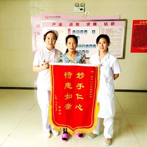 本报讯 (通讯员刘春蕾) 近日,九道乡精准扶贫户李某为县妇幼保健院送上“妙手仁心 待患如亲”的锦旗,拉着妇科刘医生的手感慨的说到:“没有想现在有这么多好政策,不但治好了我的病,还减免了一大笔住院费用,感谢国家、感谢党、感谢保健院!”