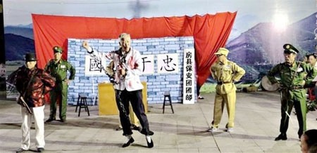 本报讯 (通讯员李明琴 刘智宝)12日晚,军店镇上茅坪村委会,人声鼎沸,锣鼓喧天,来自四面八方的群众挤满了村委会大院,为的就是要观看村里自编自演的历史歌剧《血染堆金山》。这部歌剧从剧本编篡到演员乃至剧情都是“咱们上茅坪村真人真事”。