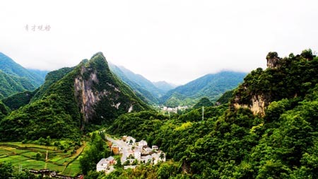 当我们这些走南闯北的江上人,见到这一片山野、河谷和山岩,脑袋瓜子那点陈腐的想法彻底改观了。你不能不感慨:好一个清幽之地,好一个世外桃源。这挂榜岩,如天坠宝塔,约五丈有余,其间,绿树点缀,伸手蓝天,脚踏大地,天地人,三者合而为一,乃三仪之地。天地君亲师,山岩上,绿幔森森,叶哨萧萧。山岩下,沟壑溶洞,泉水渗渗。房屋,犹如女子出浴一般,墙如粉面,瓦如黛眉,躺在幽静的山谷里,看云淡风轻。山路,好比一条绶带,随意地系在腰间,拂过山谷,穿过林海,显得优雅惬意。有人感慨,长恨春归无觅处,不知误入此中来。