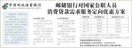 邮储银行对国家公职人员消费贷款需求服务定向优惠方案