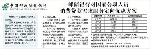 邮储银行对国家公职人员消费贷款需求服务定向优惠方案