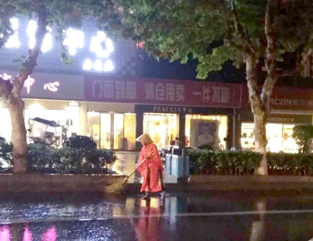 天色渐渐亮起来,汽车喇叭声、菜贩叫卖声、讨价还价声……车辆和行人越来越多,街头巷尾逐渐响起各种各样的声音,新的一天正式开始了。地面上的垃圾主要以烟头、菜叶、瓜果壳和包装袋为主,路上的垃圾怎么扫都扫不干净。经常是这边刚扫过,那边就把垃圾倒满地。张孝华夫妻俩不停地在路面上来回走动着,“挥舞”着手中的扫帚,施展着让路面保持整洁的“魔法”。