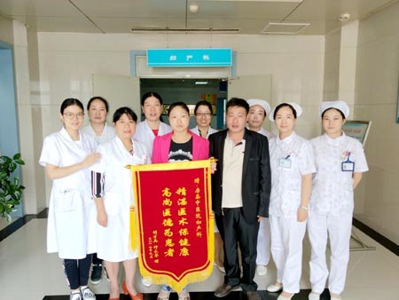 本报讯 (通讯员陈士军 彭姣) 近日,一患者及家属将印有“精湛医术保健康 高尚医德为患者”的锦旗送到县中医院妇产科医护人员手中,为表感谢之意。